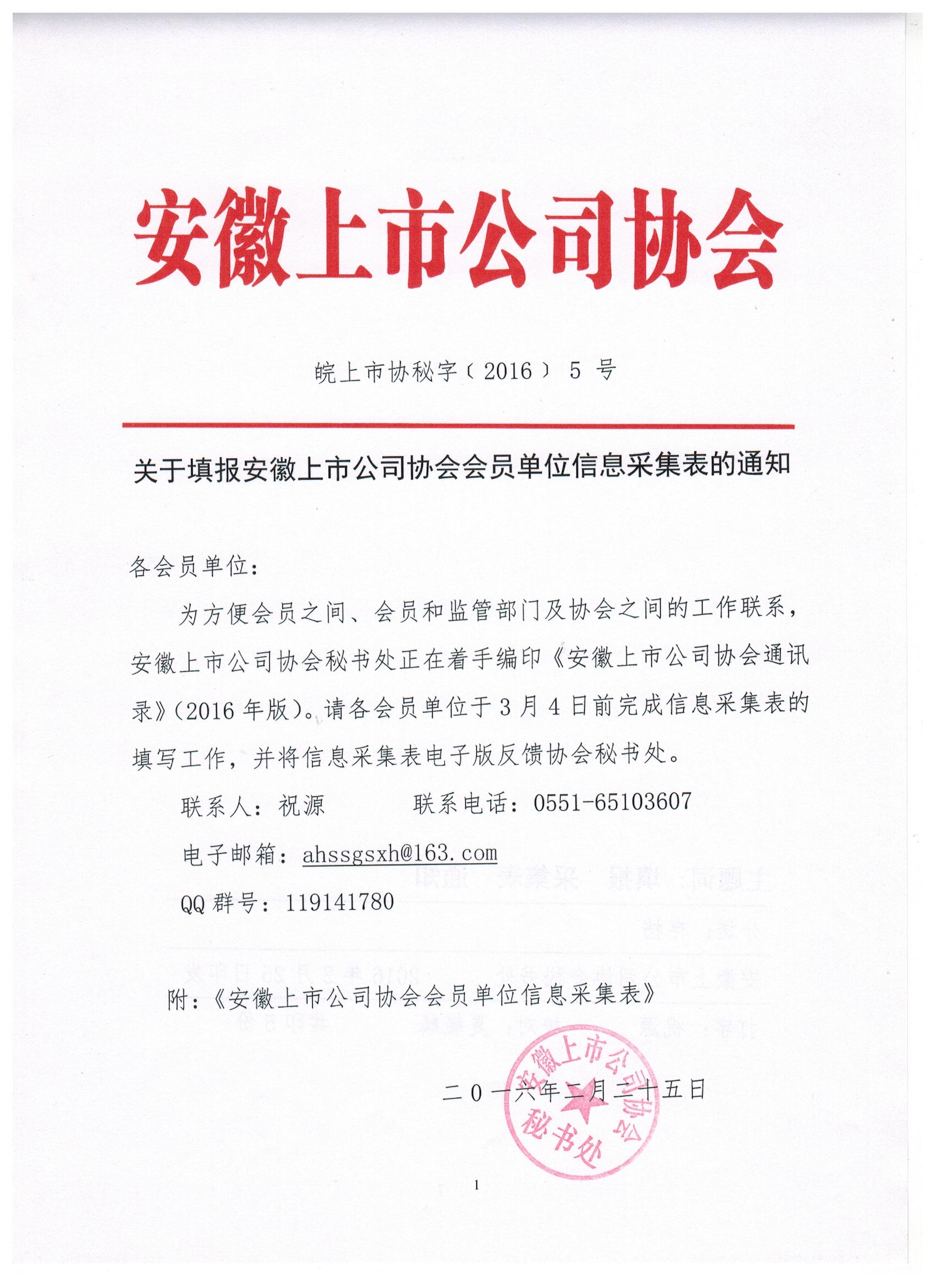 關(guān)于填報安徽上市公司協(xié)會會員信息采集表的通知