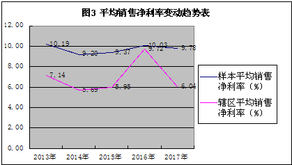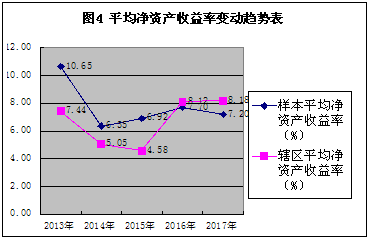 從營收和利潤變動趨勢看,5年來混改公司平均營業(yè)收入、凈利潤變化趨勢大體呈現(xiàn)出V型,轉(zhuǎn)折點在2015年,調(diào)研發(fā)現(xiàn),上述趨勢變化很大程度上反映了轄區(qū)鋼鐵、煤炭等大型國企“去產(chǎn)能”供給側(cè)結(jié)構(gòu)性改革同混合所有制改革結(jié)合的效應(yīng)體現(xiàn)。2016年起營業(yè)收入、盈利水平逐步上升,特別是2017年混改公司平均營業(yè)收入、凈利潤增長勢頭好于轄區(qū)總體平均水平(見圖1、2)。這與混改公司混改時間分布(表1)大體吻合,表明混改一定程度上帶動公司業(yè)績的上升。從盈利指標(biāo)考察,混改公司平均銷售凈利率在2016年達(dá)到峰值,之后呈下滑趨勢,但2017年較2016年平均銷售凈利率下降2.74%,遠(yuǎn)低于轄區(qū)平均下降幅度(37.86%)?;旄墓緝糍Y產(chǎn)收益率變動趨勢呈V型,2015年為折點,2017年略有下降,下降幅度大于轄區(qū)平均。這表明混改一定程度上促進(jìn)公司銷售盈利水平的提高,但對投入資本盈利能力改善效果不理想。馬鋼股份、銅陵有色等大型國企通過縮短管理鏈條、引入員工持股等,在2015年的轉(zhuǎn)型中平穩(wěn)過渡,并保持了經(jīng)營業(yè)績的持續(xù)增長。