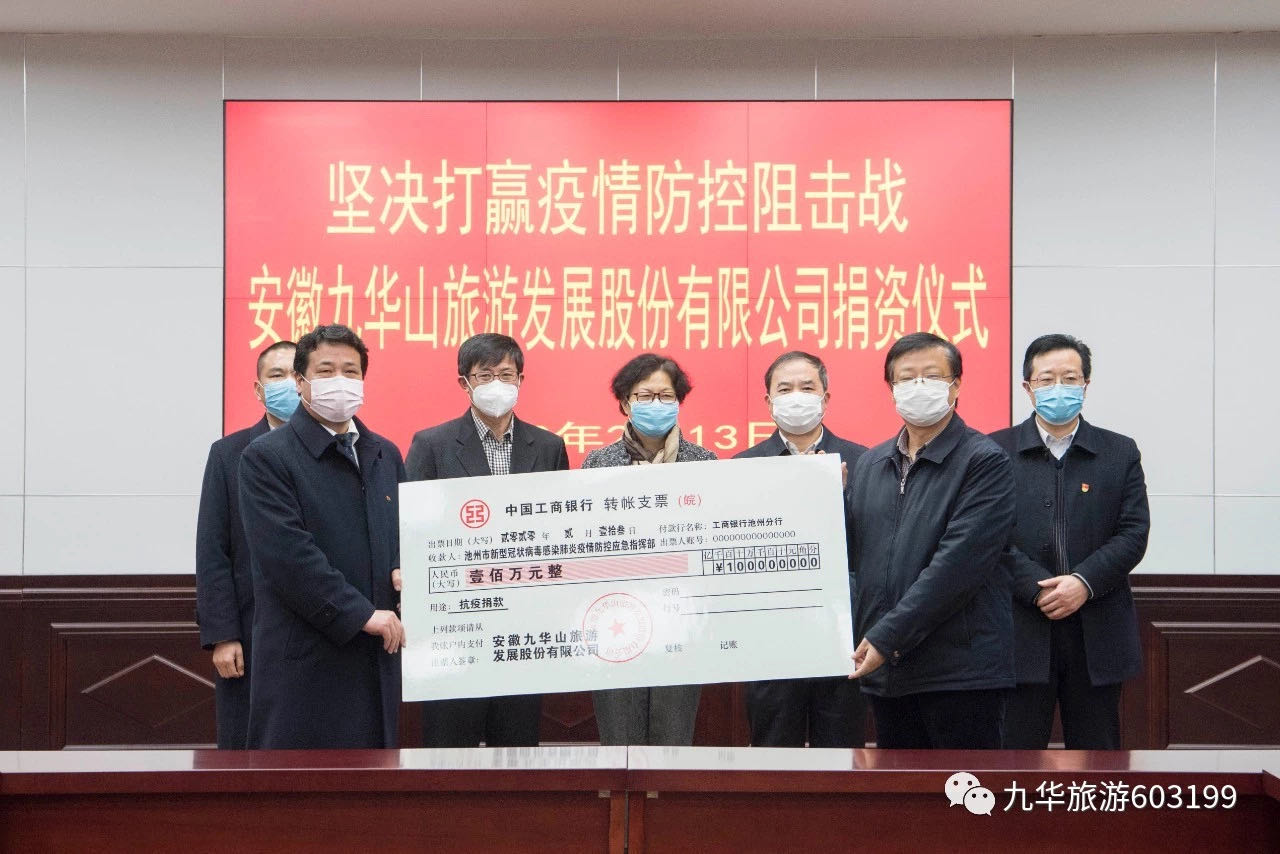 九華旅游彰顯擔(dān)當(dāng) 捐贈(zèng)150萬抗擊疫情