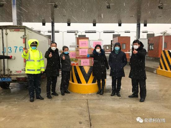 2020年2月15日下午,巢湖市商務(wù)局黨組成員、副局長王健康,安德利百貨副總經(jīng)理劉章宏一行,向巢湖市域公路市界六個疫情防控卡點(diǎn)(安巢經(jīng)開區(qū)(蕪合高速巢湖入口處)、烔煬鎮(zhèn)(烔煬鎮(zhèn)與肥東縣交界處)、銀屏鎮(zhèn)(銀屏鎮(zhèn)與無為界交界處)、亞父街道(亞父與含山縣交界處)、半湯街道(半湯街道與含山縣交界處)、槐林鎮(zhèn)(槐林兆河大橋))的一線“戰(zhàn)士們”送去面包、餅干、牛奶、奶茶等慰問品,感謝他們堅(jiān)守一線,頂著風(fēng)雪和風(fēng)險為一方百姓安全所做出的努力。