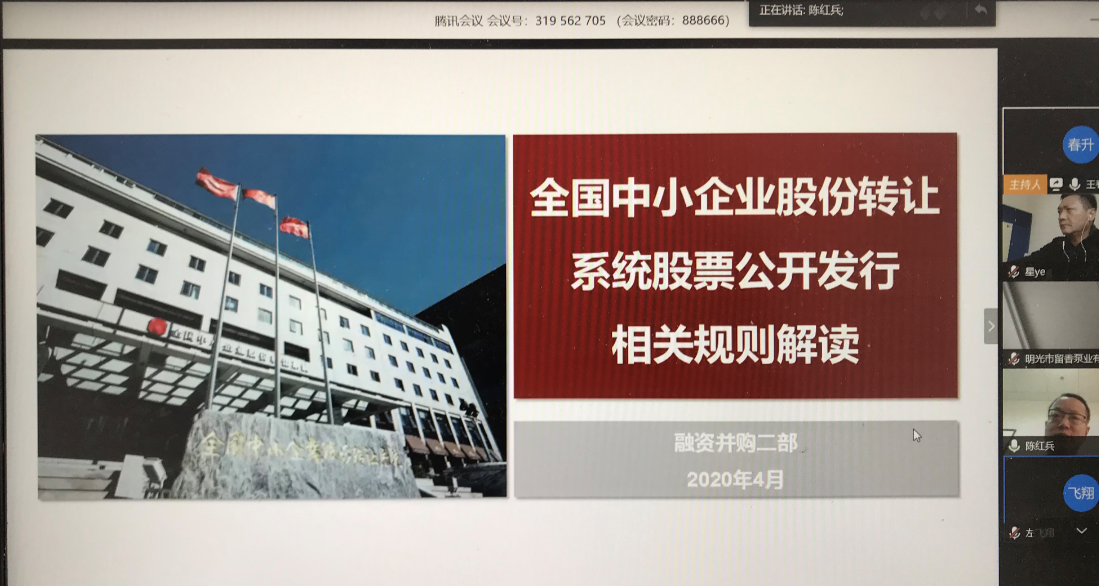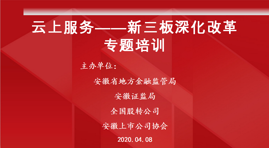 時值設(shè)立精選層在內(nèi)的新三板深化改革舉措正如火如荼鋪開,為進(jìn)一步幫助安徽新三板公司及時準(zhǔn)確了解新三板改革動態(tài),根據(jù)安徽證監(jiān)局工作部署,4月8日,我會配合舉辦了新三板精選層制度規(guī)則專題培訓(xùn)活動。協(xié)會新三板工作委員會委員及安徽110家掛牌公司以及16個地市的金融局,近200人通過在線形式參加培訓(xùn)。