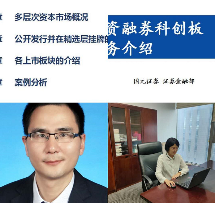 首先,由國(guó)元證券投行部總經(jīng)理王晨和證金部王丹妮分別做《新三板轉(zhuǎn)板情況概述》和《科創(chuàng)板融資融券業(yè)務(wù)規(guī)則》專題講座。講座圍繞我國(guó)多層次資本市場(chǎng)發(fā)展情況,對(duì)新三板公開(kāi)發(fā)行和精選層掛牌上市審核分層管理等做了詳盡解讀,并對(duì)科創(chuàng)板融資融券業(yè)務(wù)實(shí)施過(guò)程中的注意要點(diǎn)和線上參會(huì)人員做了充分交流討論。