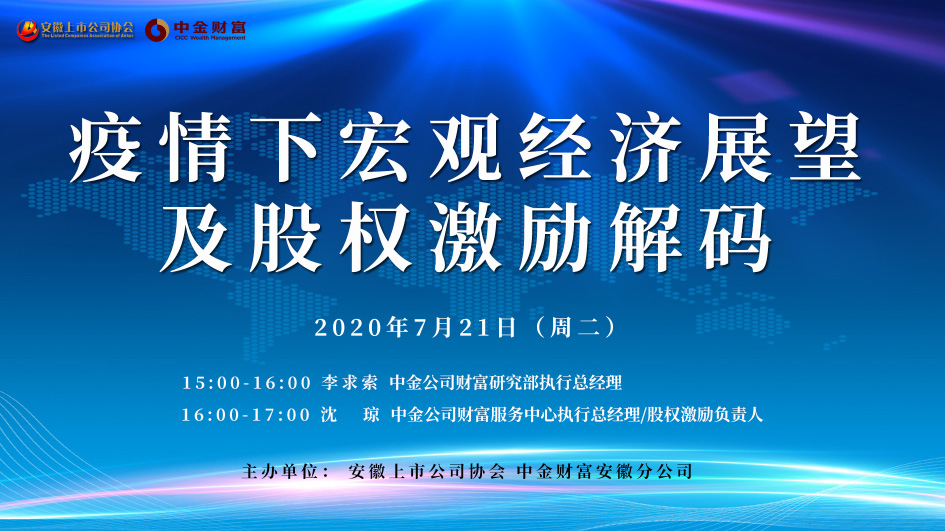為進(jìn)一步幫助安徽上市公司把脈疫情下宏觀經(jīng)濟(jì)影響及各行業(yè)發(fā)展前景,以及如何通過股權(quán)激勵(lì)吸引和激勵(lì)人才、強(qiáng)化企業(yè)競爭力,我會于7月21日舉辦“疫情下宏觀經(jīng)濟(jì)展望及股權(quán)激勵(lì)解碼”專題講座,會員單位460余人參與線上學(xué)習(xí)交流。