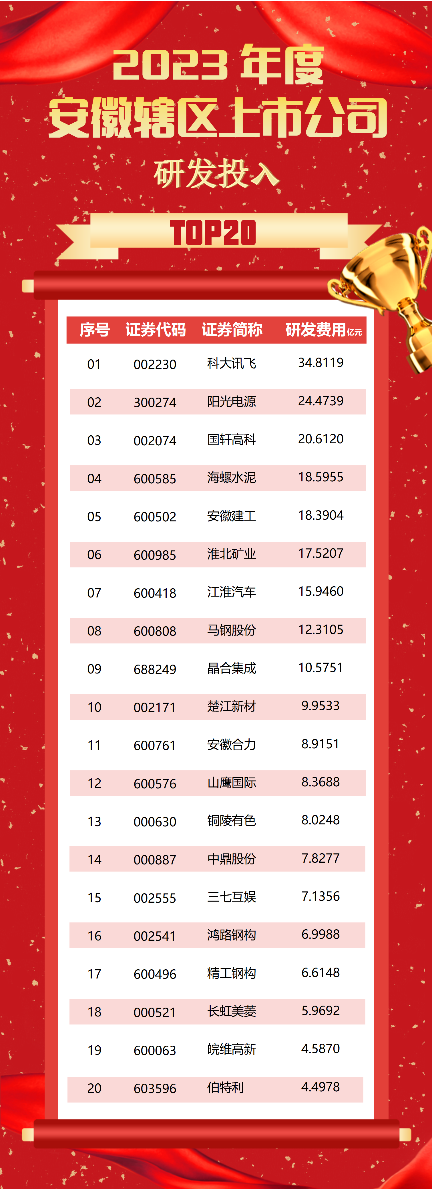 2023年度安徽轄區(qū)上市公司【研發(fā)投入】TOP20