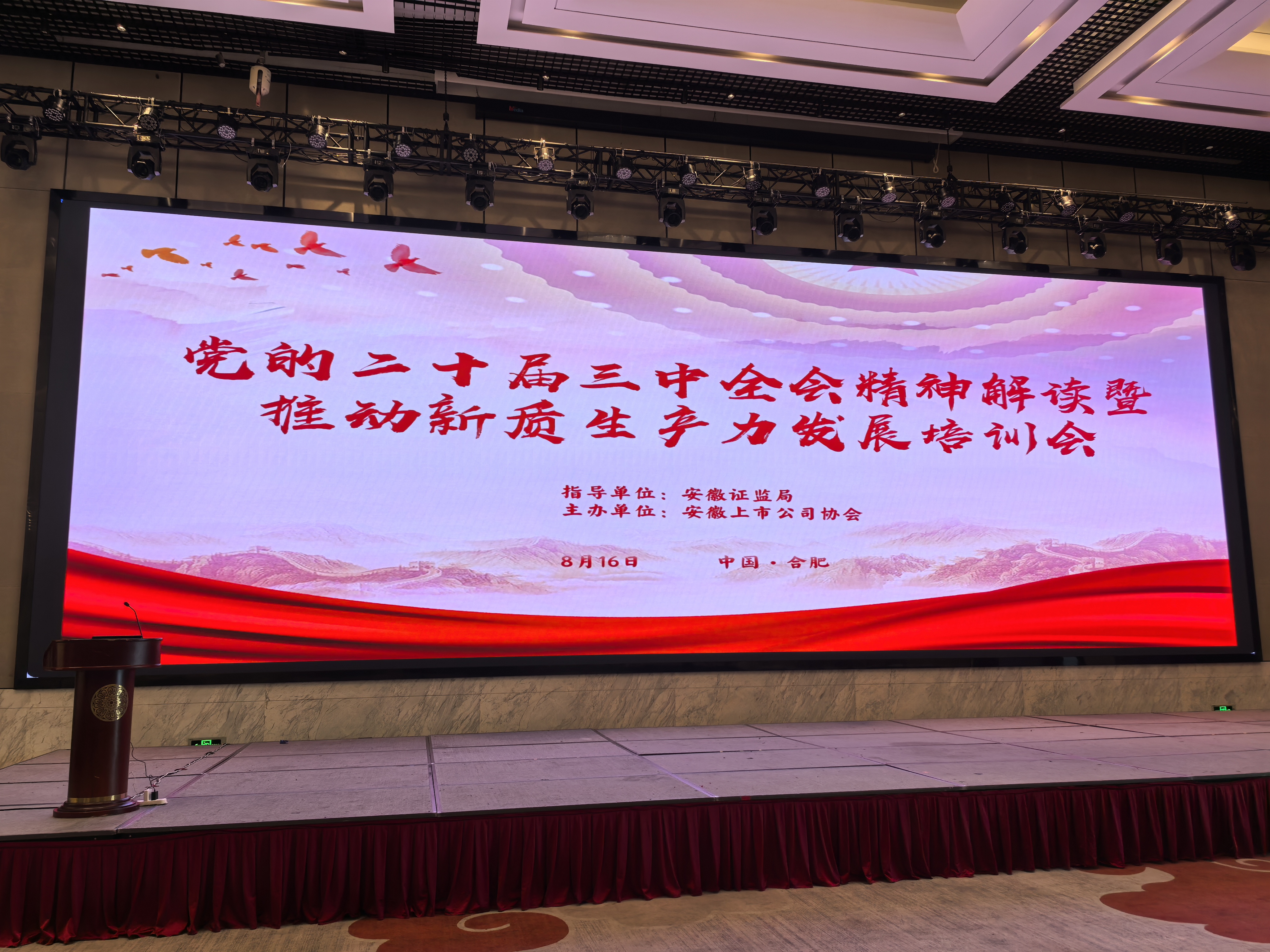 為深入學習貫徹黨的二十屆三中全會精神,引導轄區(qū)上市公司準確把握全會精神實質,推動新質生產力發(fā)展,在安徽證監(jiān)局指導下,我會于8月16日在合肥成功舉辦“黨的二十屆三中全會精神解讀暨推動新質生產力發(fā)展培訓會”,轄區(qū)66家上市公司的100余名董監(jiān)高及相關人員參會。