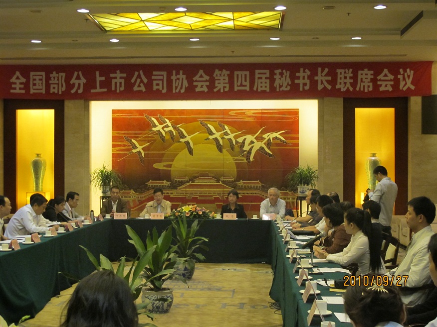 第四屆全國(guó)部分上市公司協(xié)會(huì)秘書(shū)長(zhǎng)聯(lián)席會(huì)議于2010年9月26日——29日在陜西西安召開(kāi)。本次會(huì)議由陜西上市公司協(xié)會(huì)承辦。此次共有來(lái)自北京、浙江、山東、遼寧、黑龍江、江西、福建、廣西、甘肅、四川、武漢、大連、廈門(mén)、云南、寧波、廣東、重慶、安徽和陜西等19家上市公司協(xié)會(huì)的秘書(shū)長(zhǎng)和工作人員30人參加。